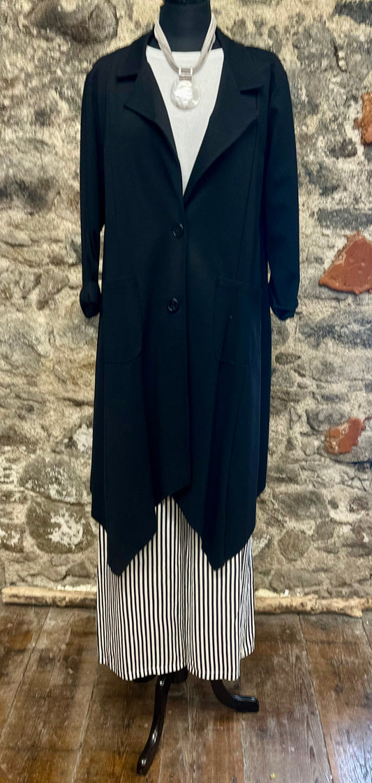 “Lacey “ Italian irregular hem jacket ebony black