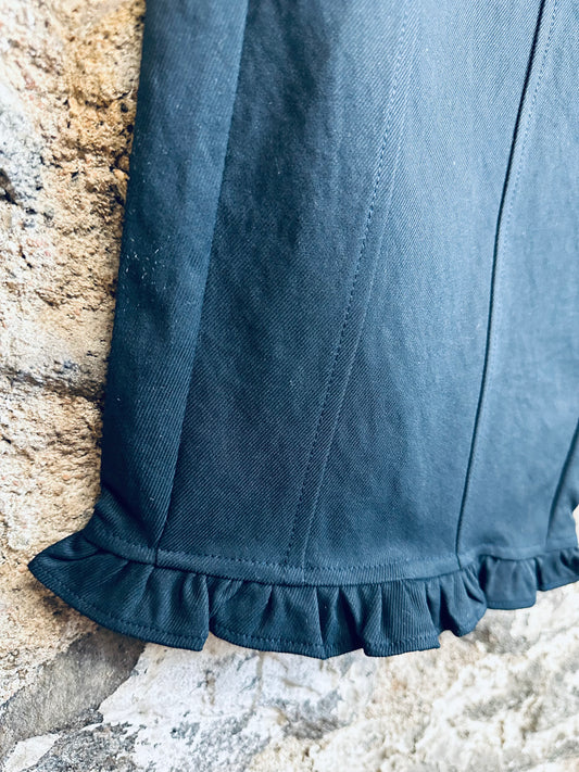 “Nicky “ ankle graze dark navy frill cuff canvas trouser