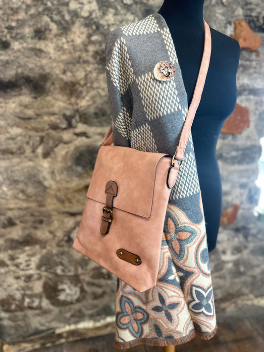 “Maggie “ soft apricot vegan crossbody satchel