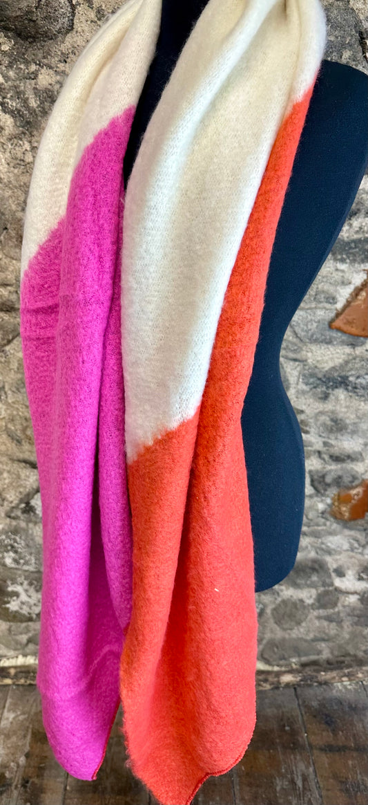 Tangerine..cerise and natural super cosey xtra large wrap