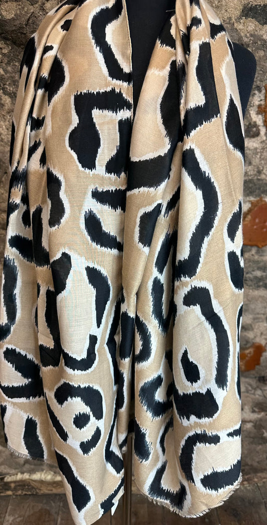 Stone ivory and black autumnal large wrap
