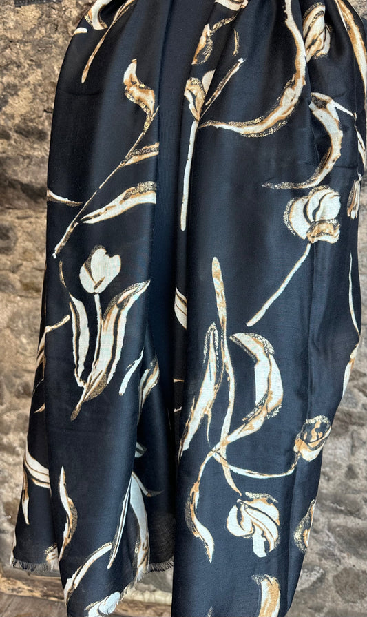 Ebony and stone delicate abstract floral large wrap