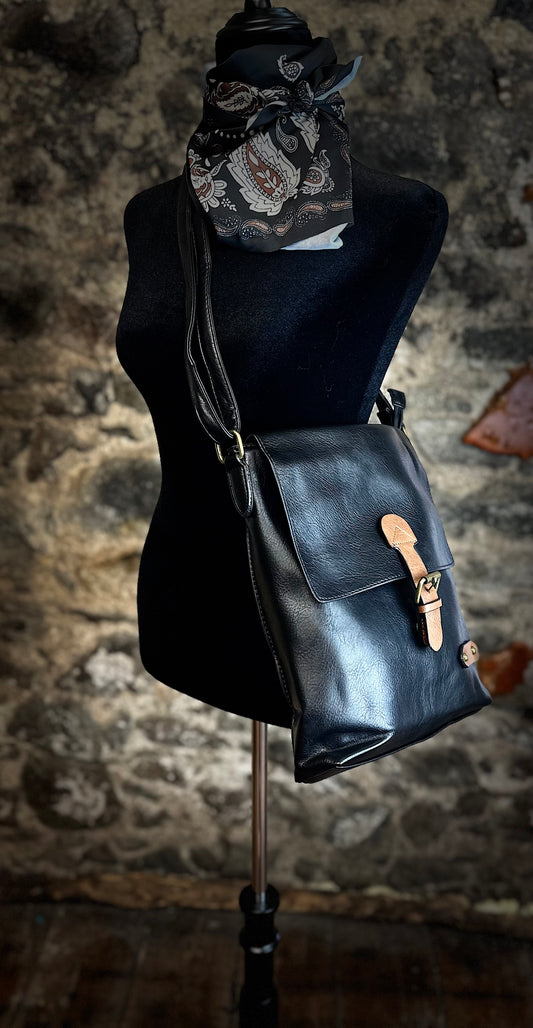 “Maggie “black vegan crossbody satchel