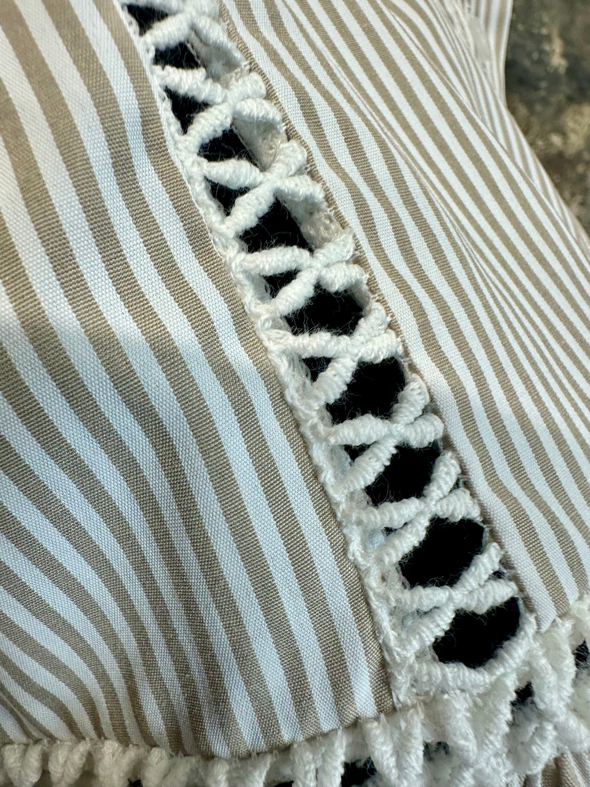 “Annabelle”pinstripe mocha and ivory pilgrim ruffle italain shirt