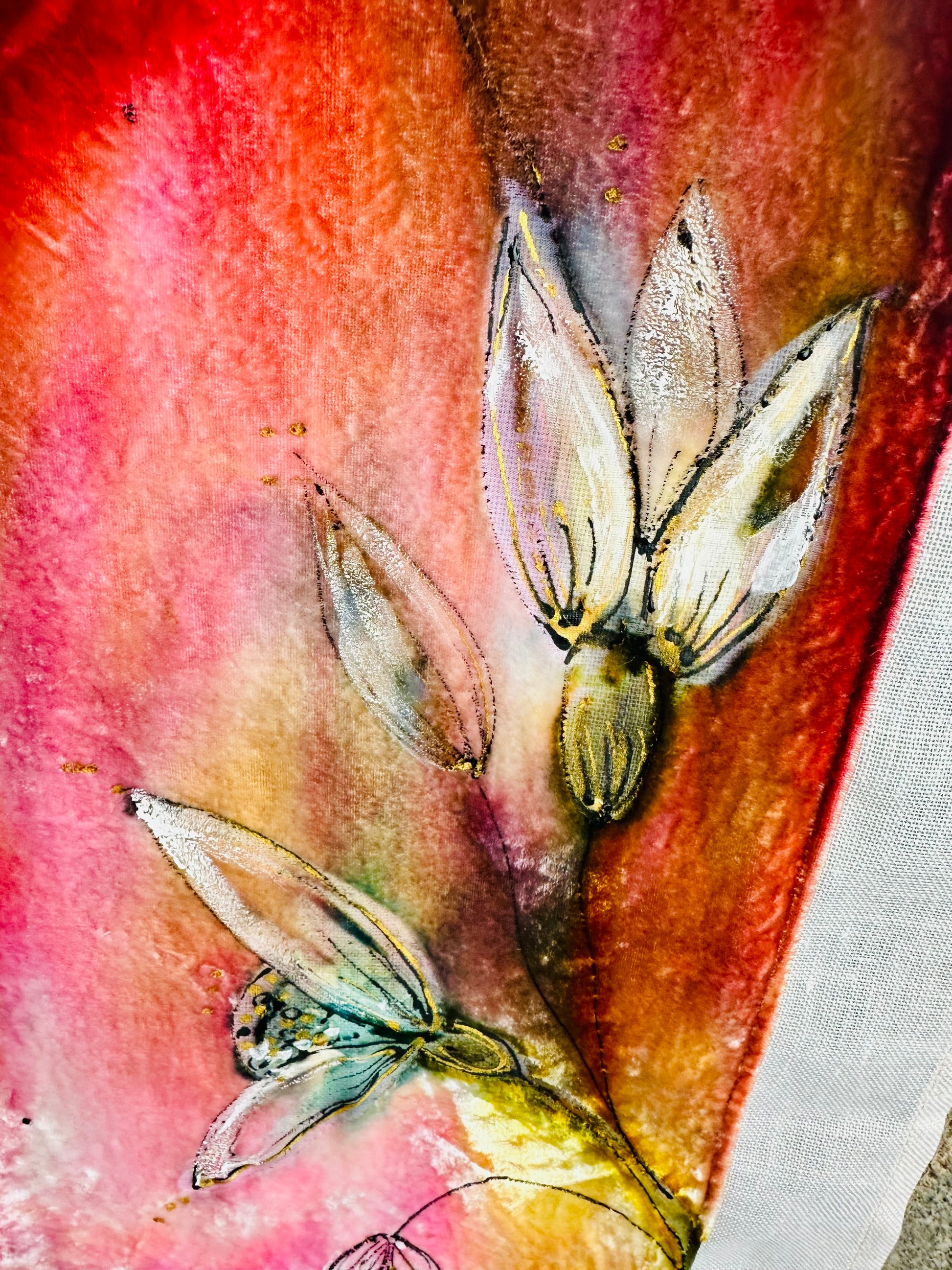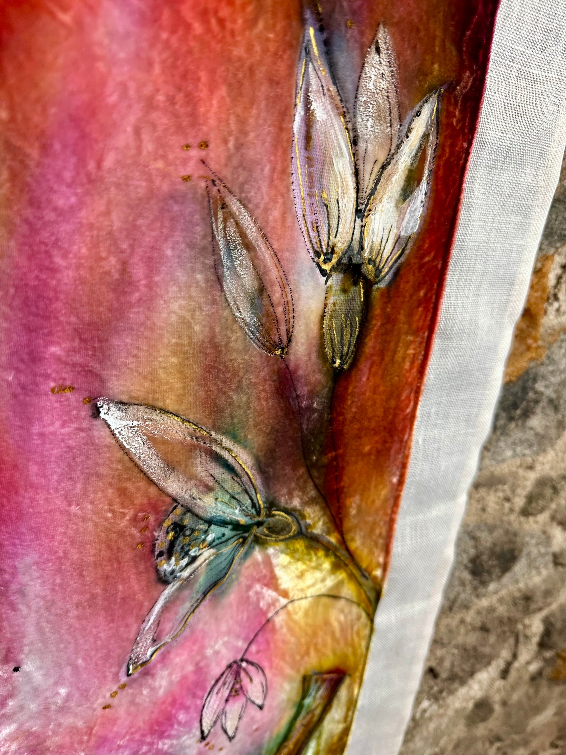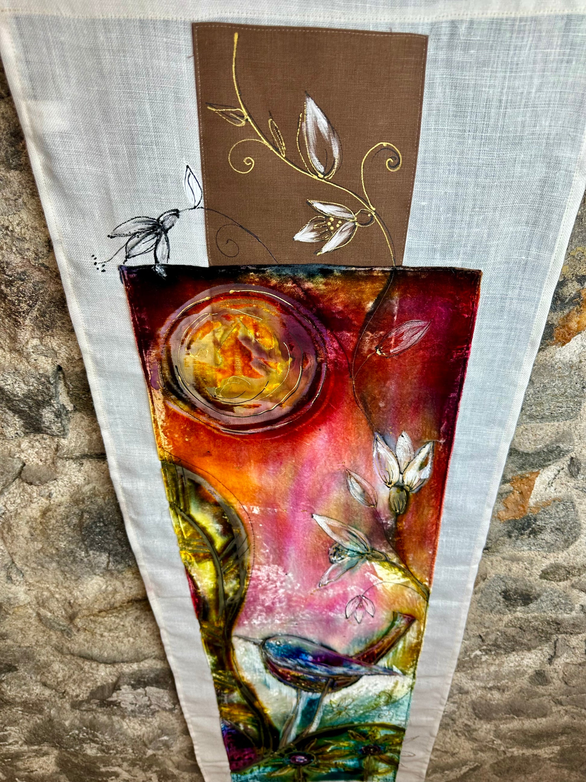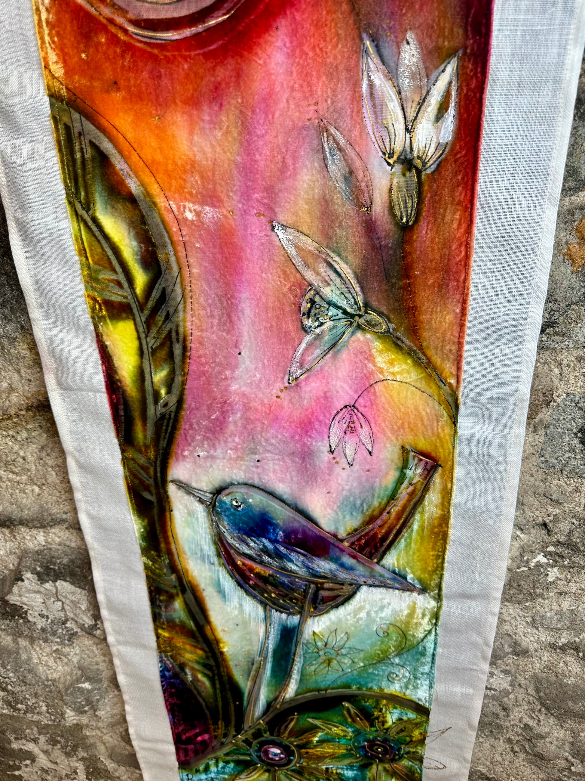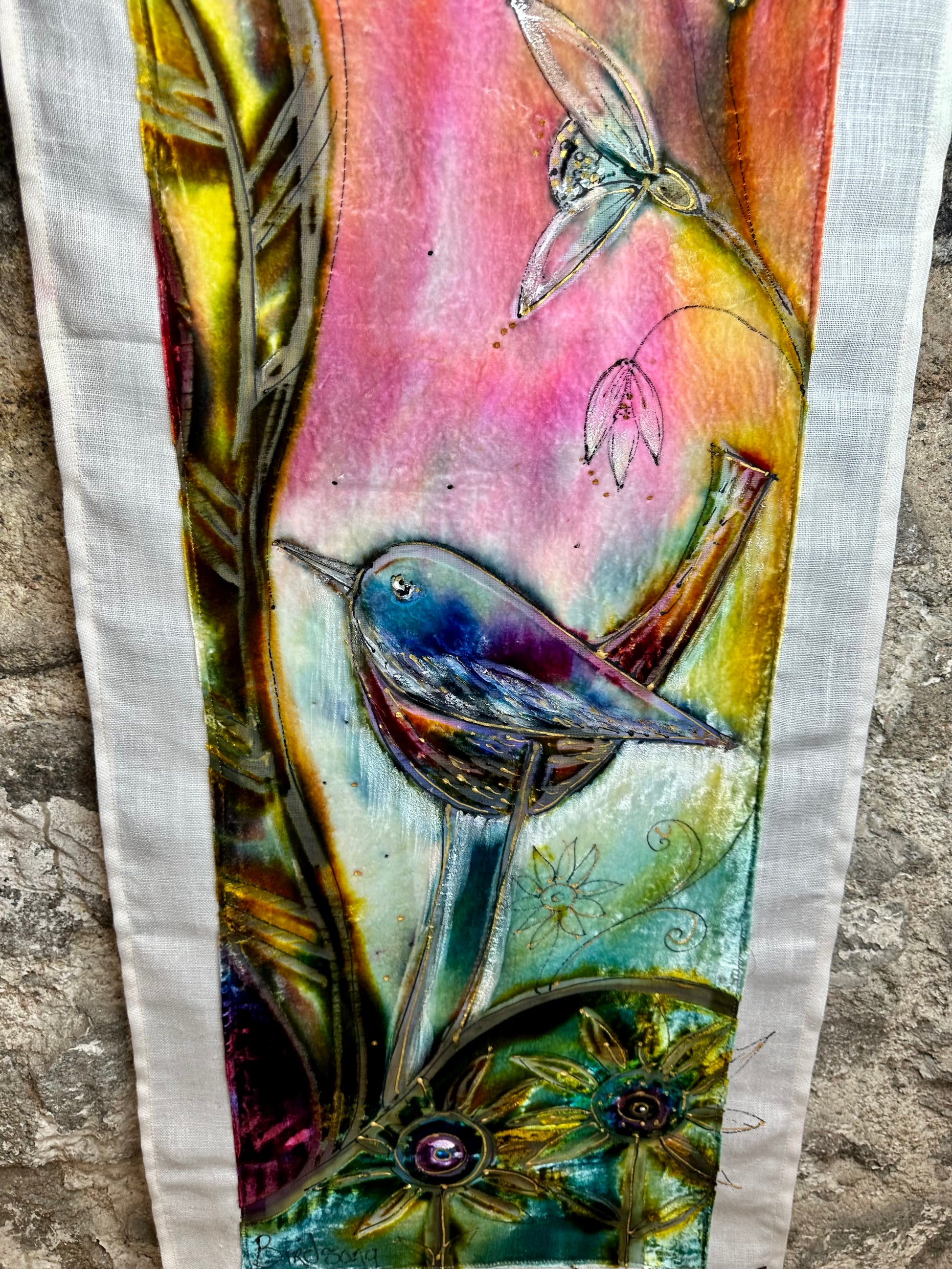 Lorsha Handpainted Devore velvet on Irish linen poled wall hanging collection finished size 50 cm x 150 cm