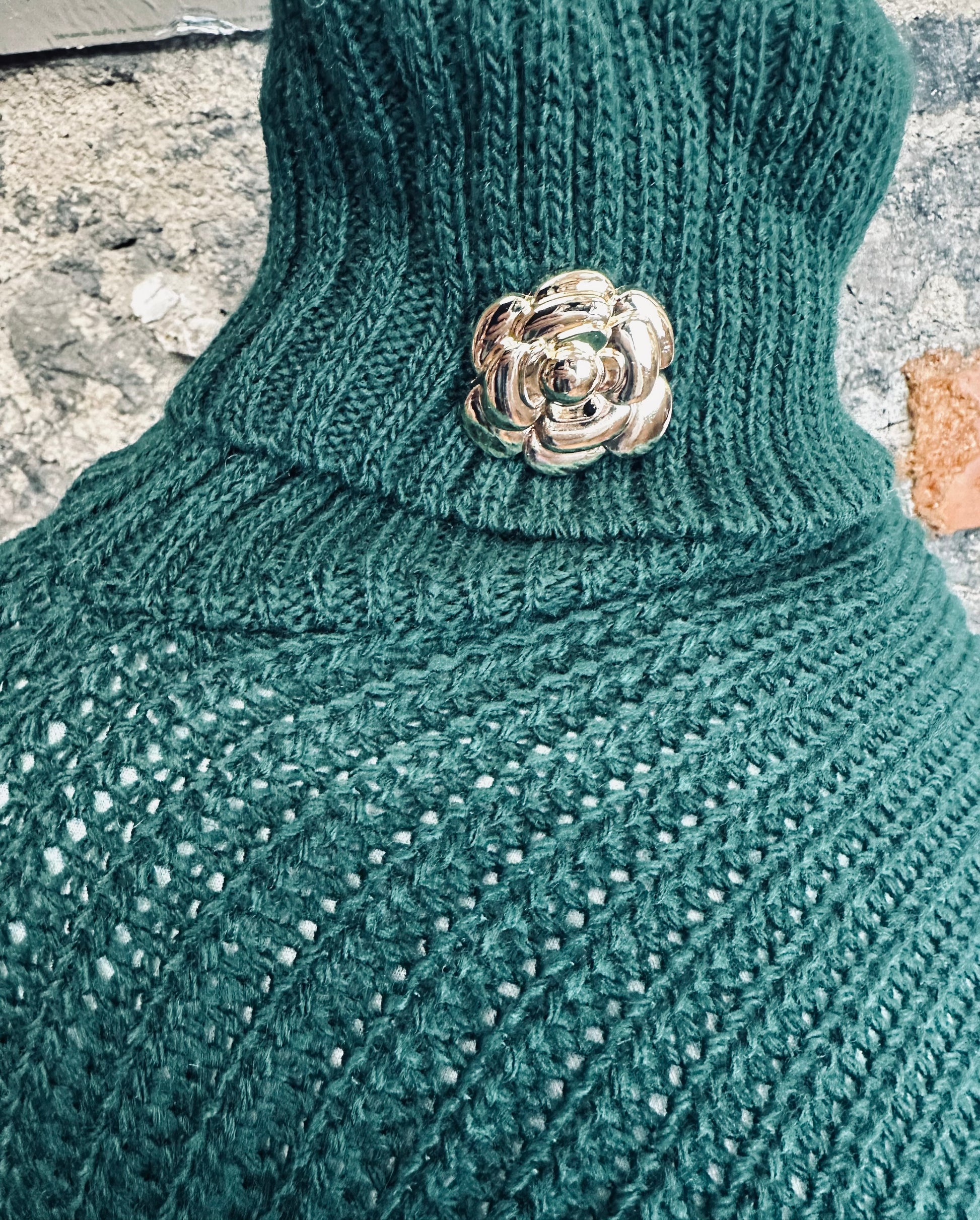 “Darina” Forest green high neck knit sleeved polo neck cape