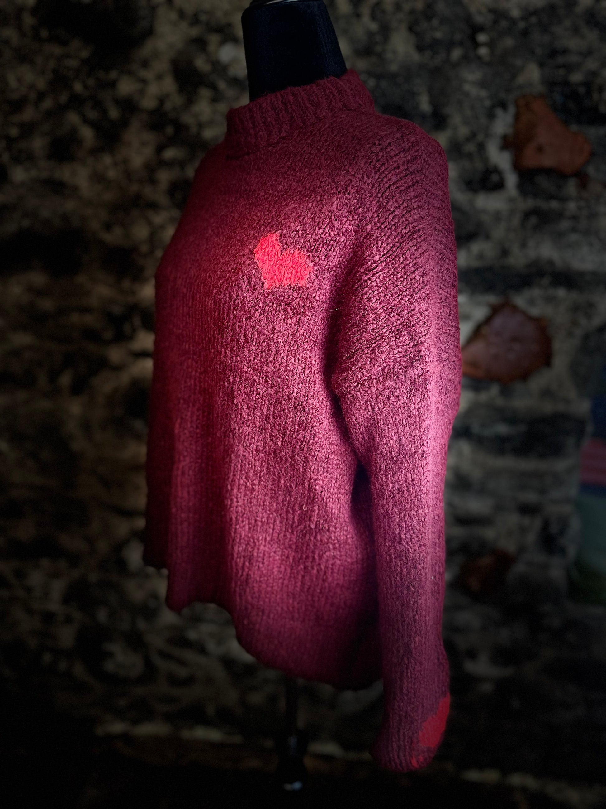 “Evie “ Bordeaux Italian loose knit little heart knit