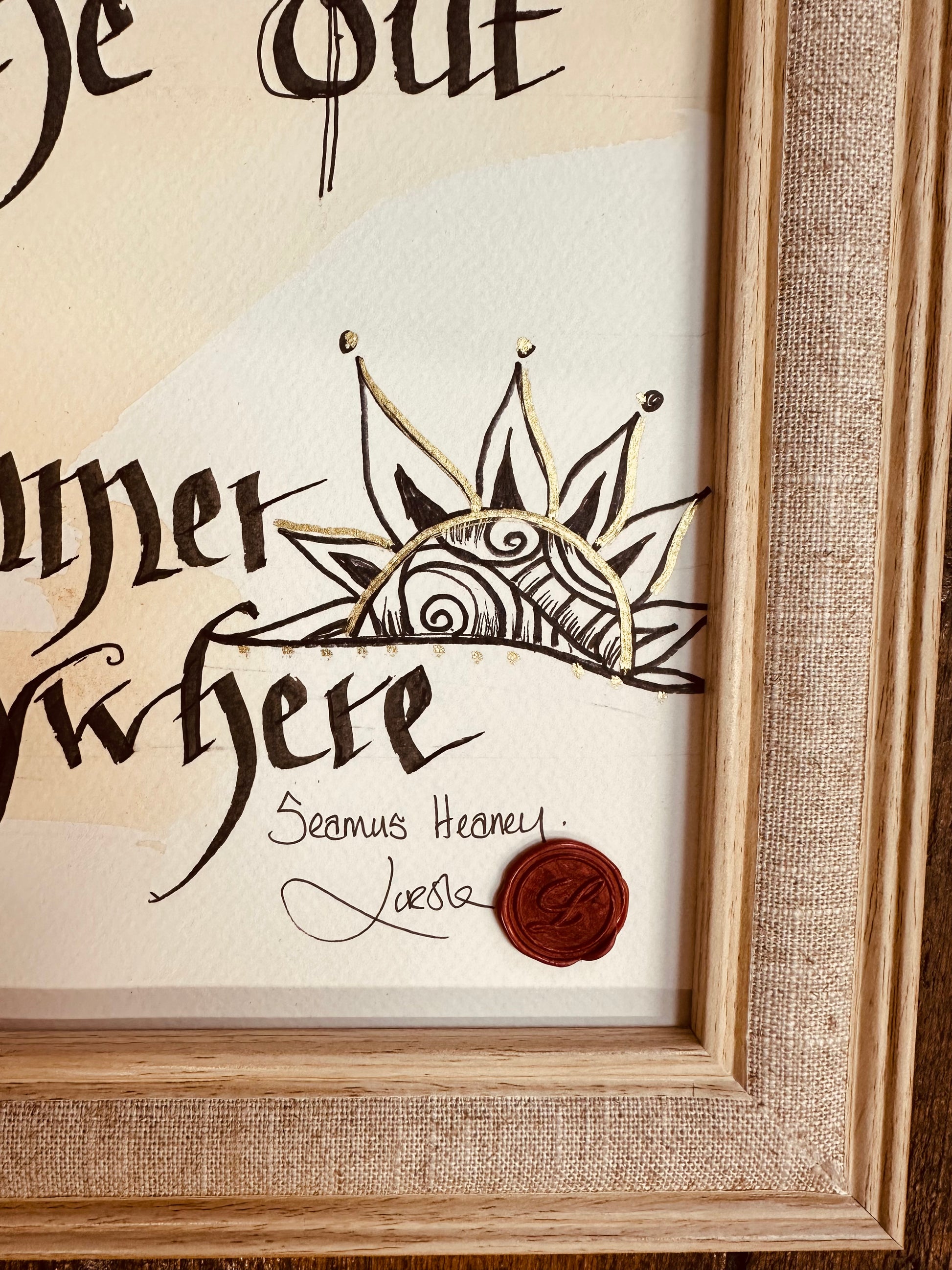 Framed in a natural linen frame finished size including frame 45 cm x 35 cm