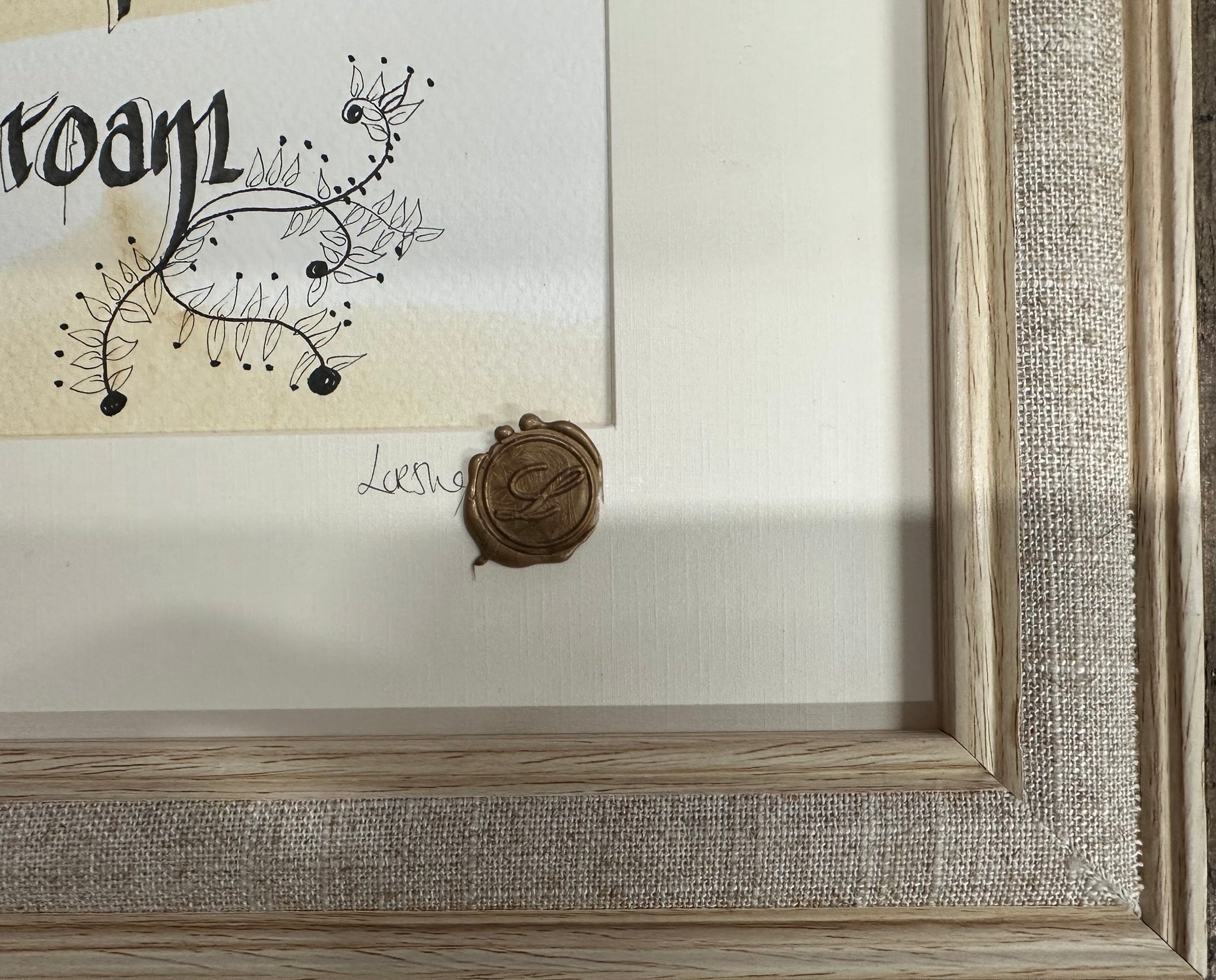 framed in a natural linen frame finished size 40 cm x 50 cm