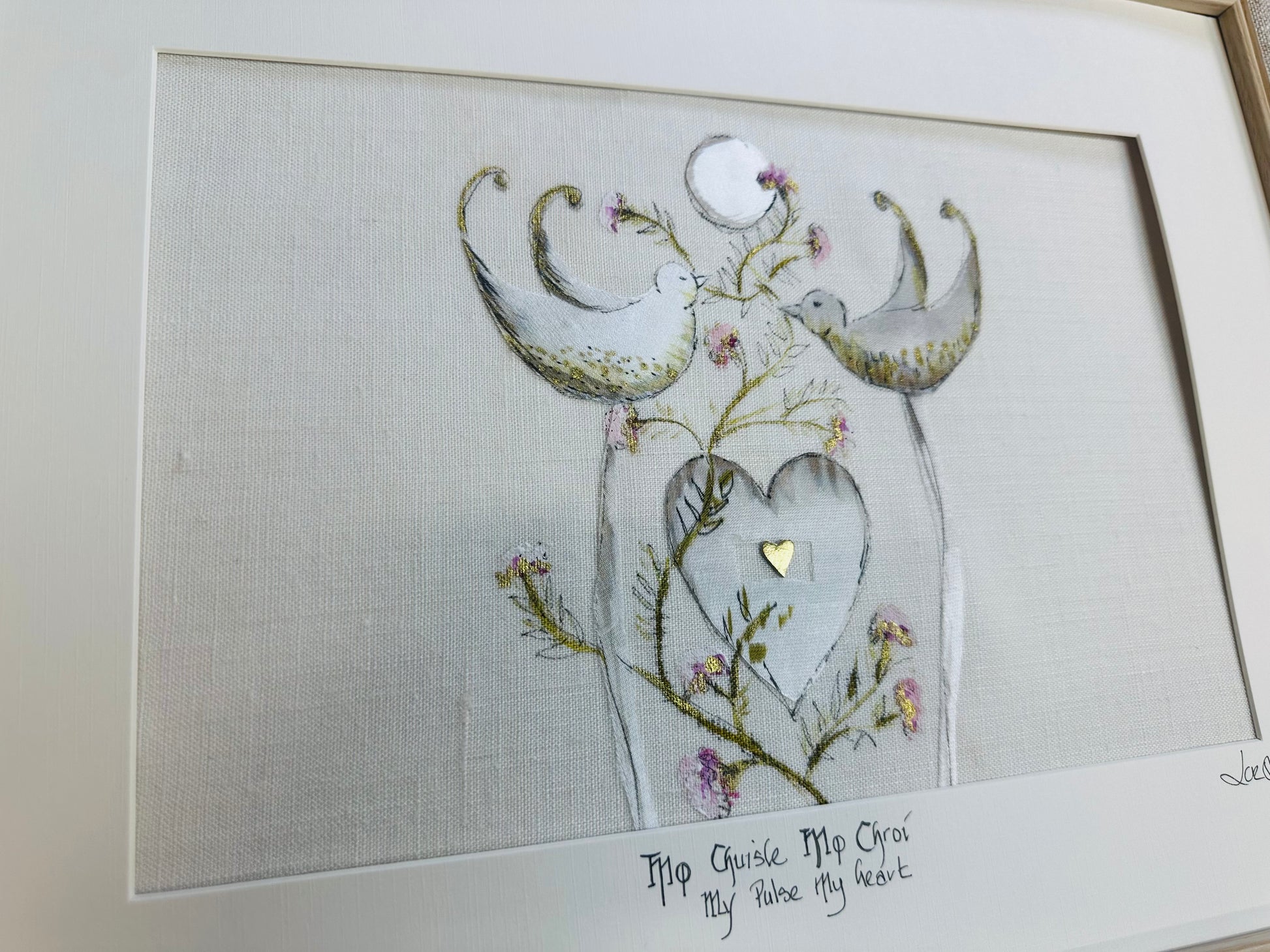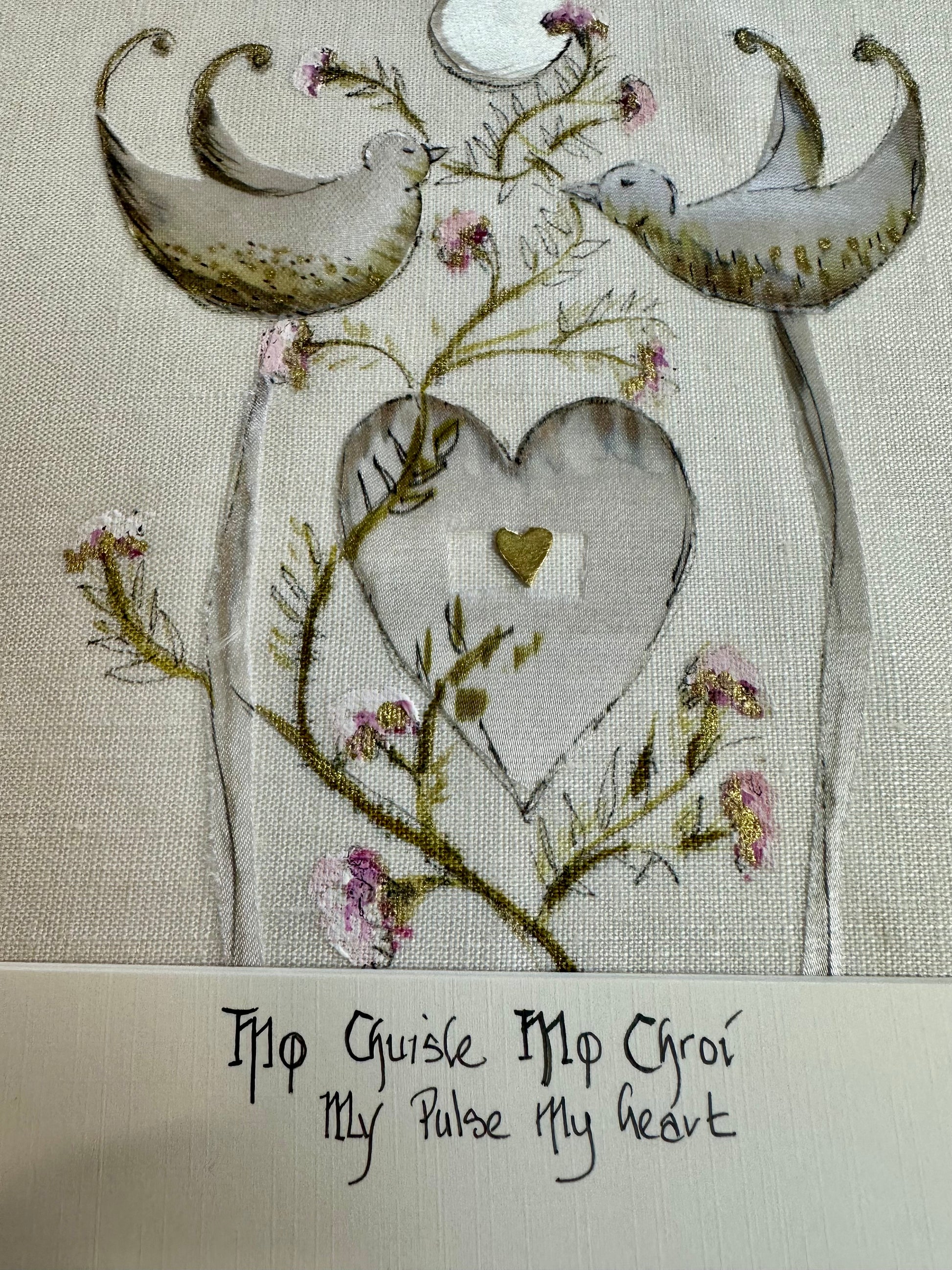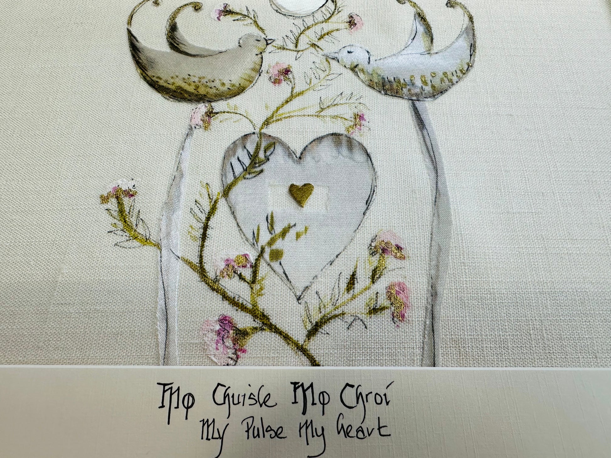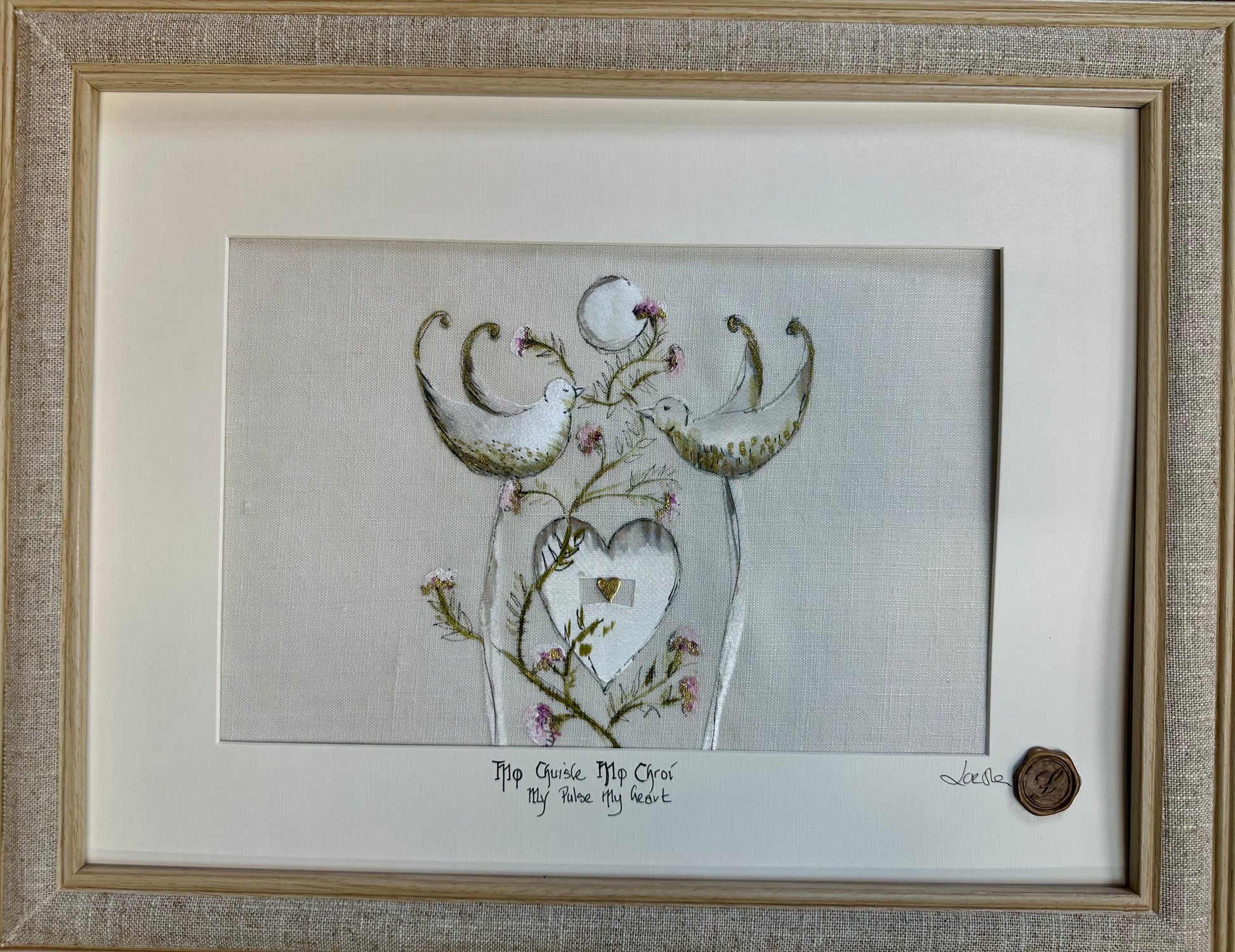 lorsha hand painted satin silk on Irish linen ..” grá” love collection