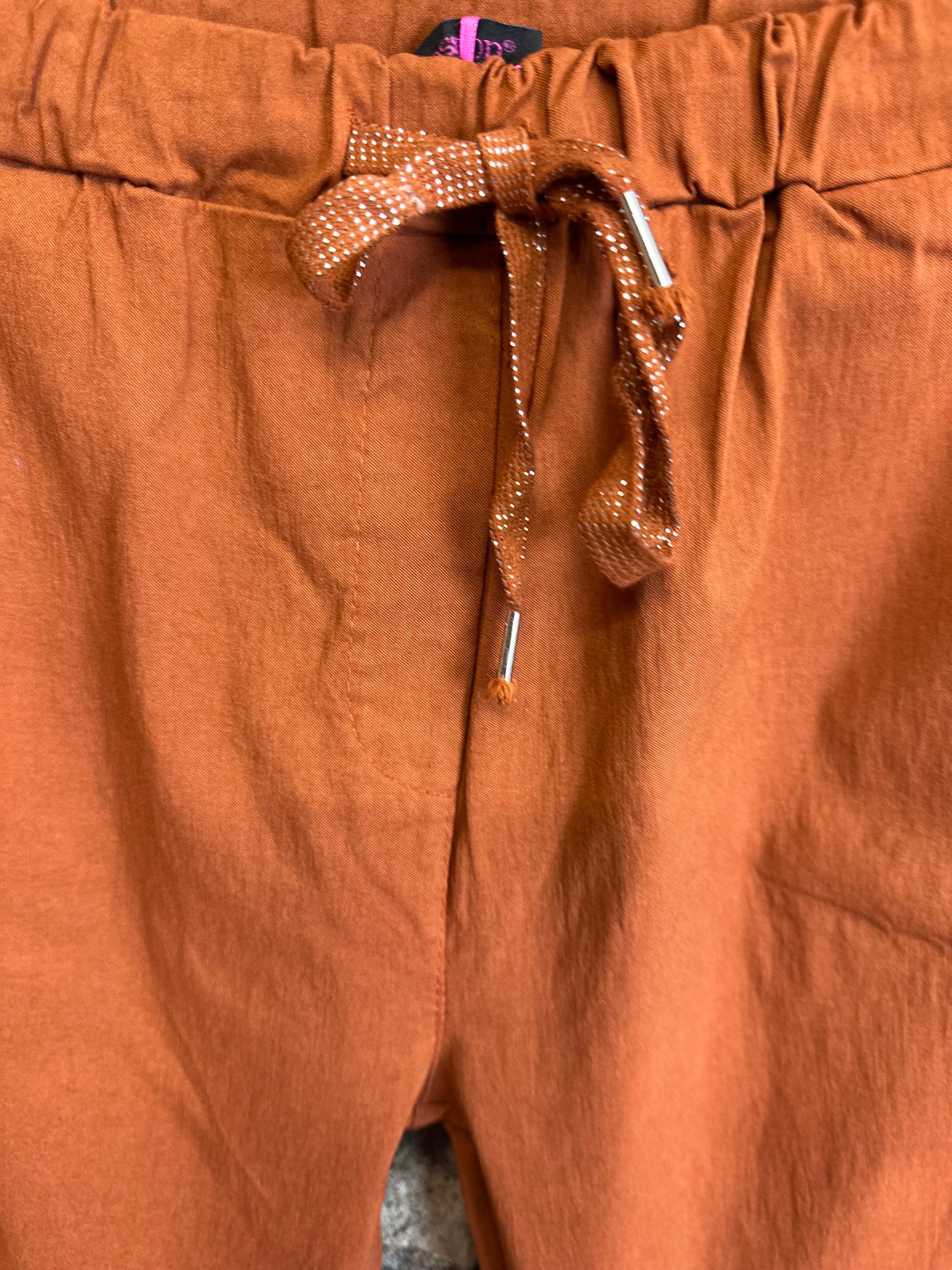 “Rachel “ rust Italian magic stretch cigarette leg turn up trouser