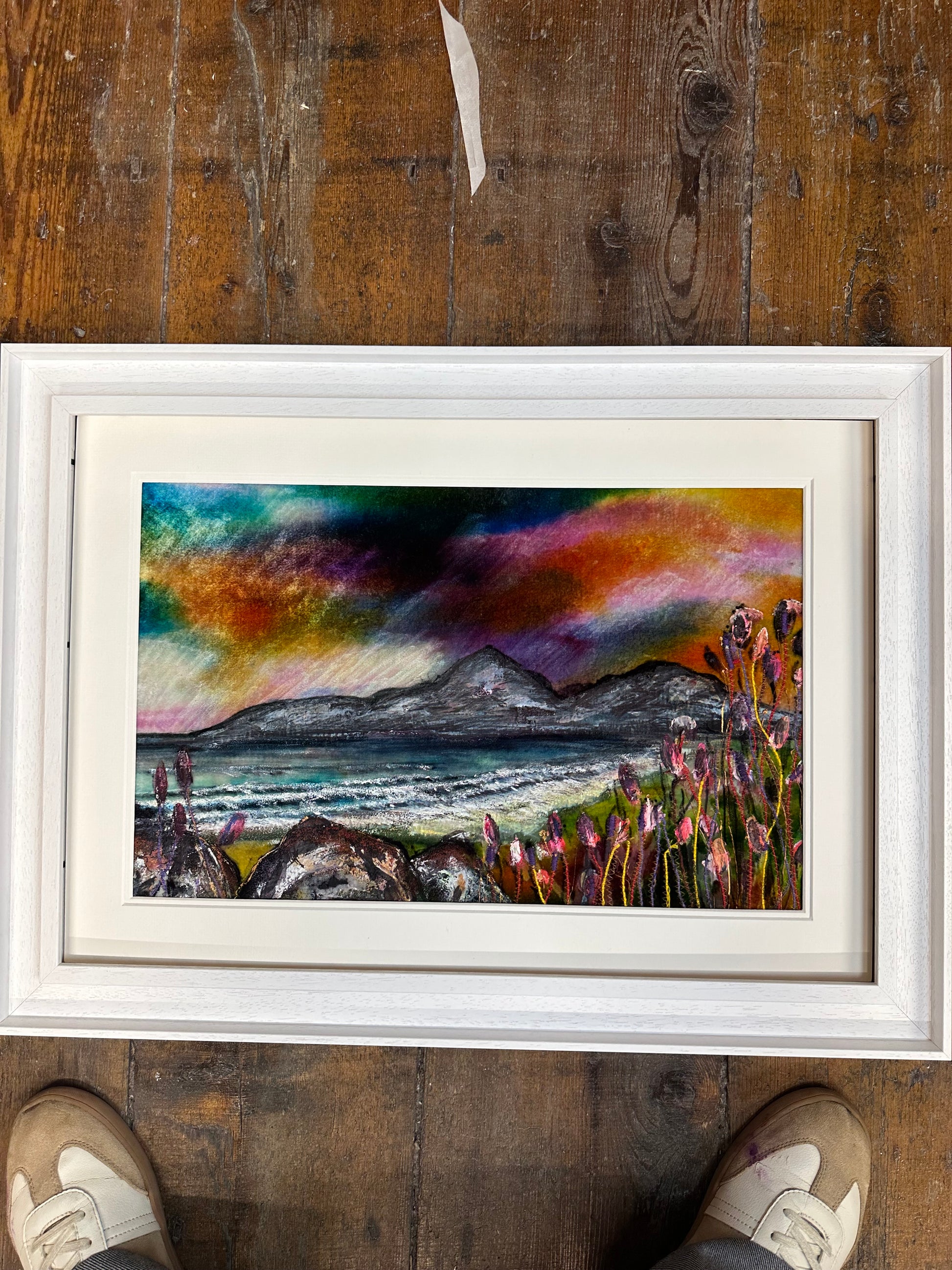 framed in a contemporary white wood deep set frame