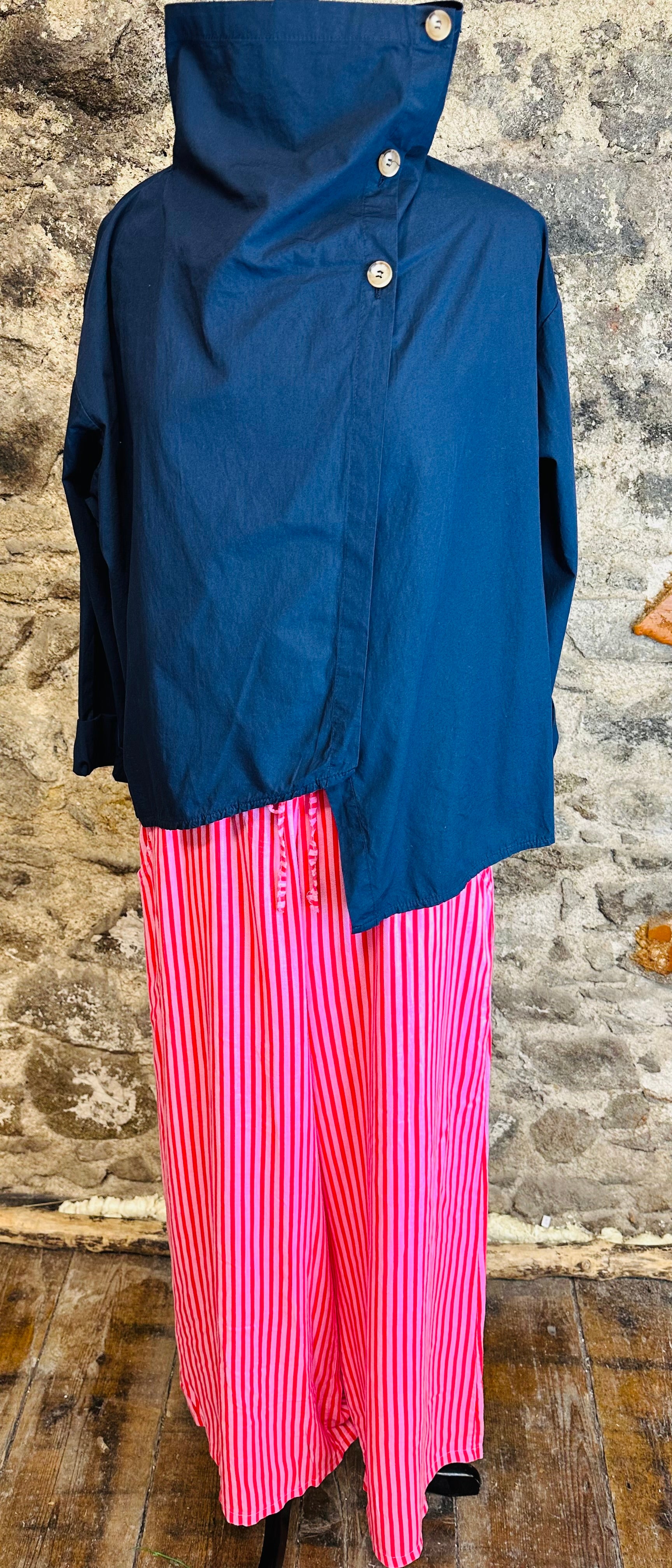 “Suzie”navy funnel neck cotton Italian jacket