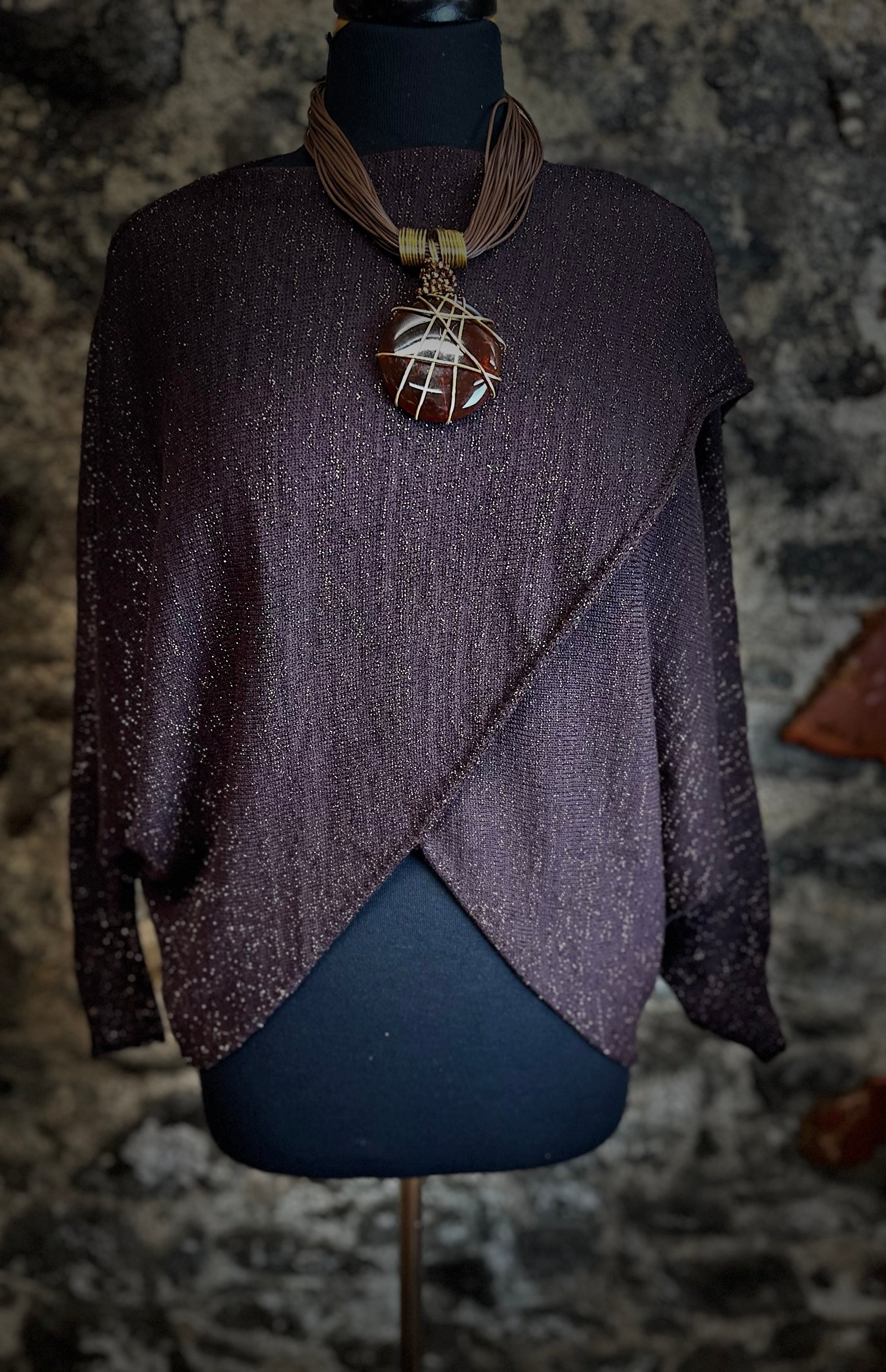 “Tanya “ chocolate Italian wrap knit with metallic fleck