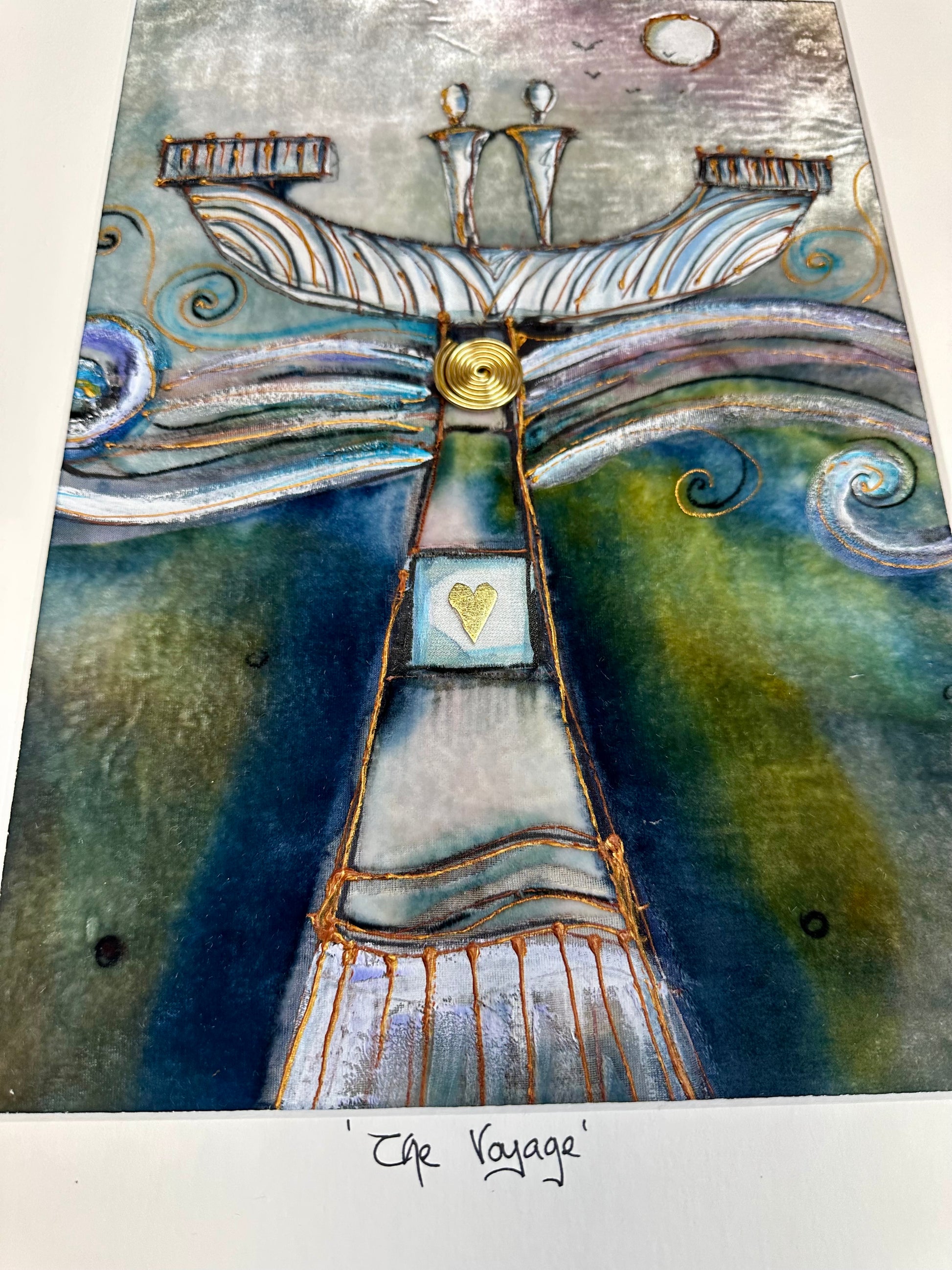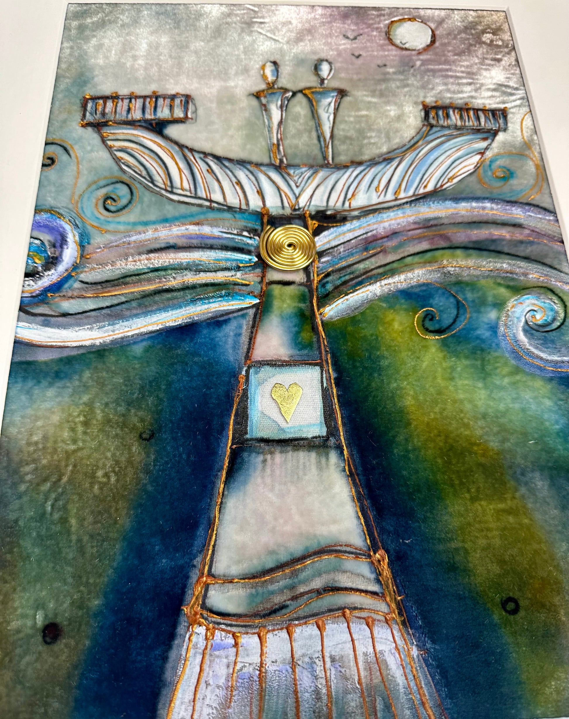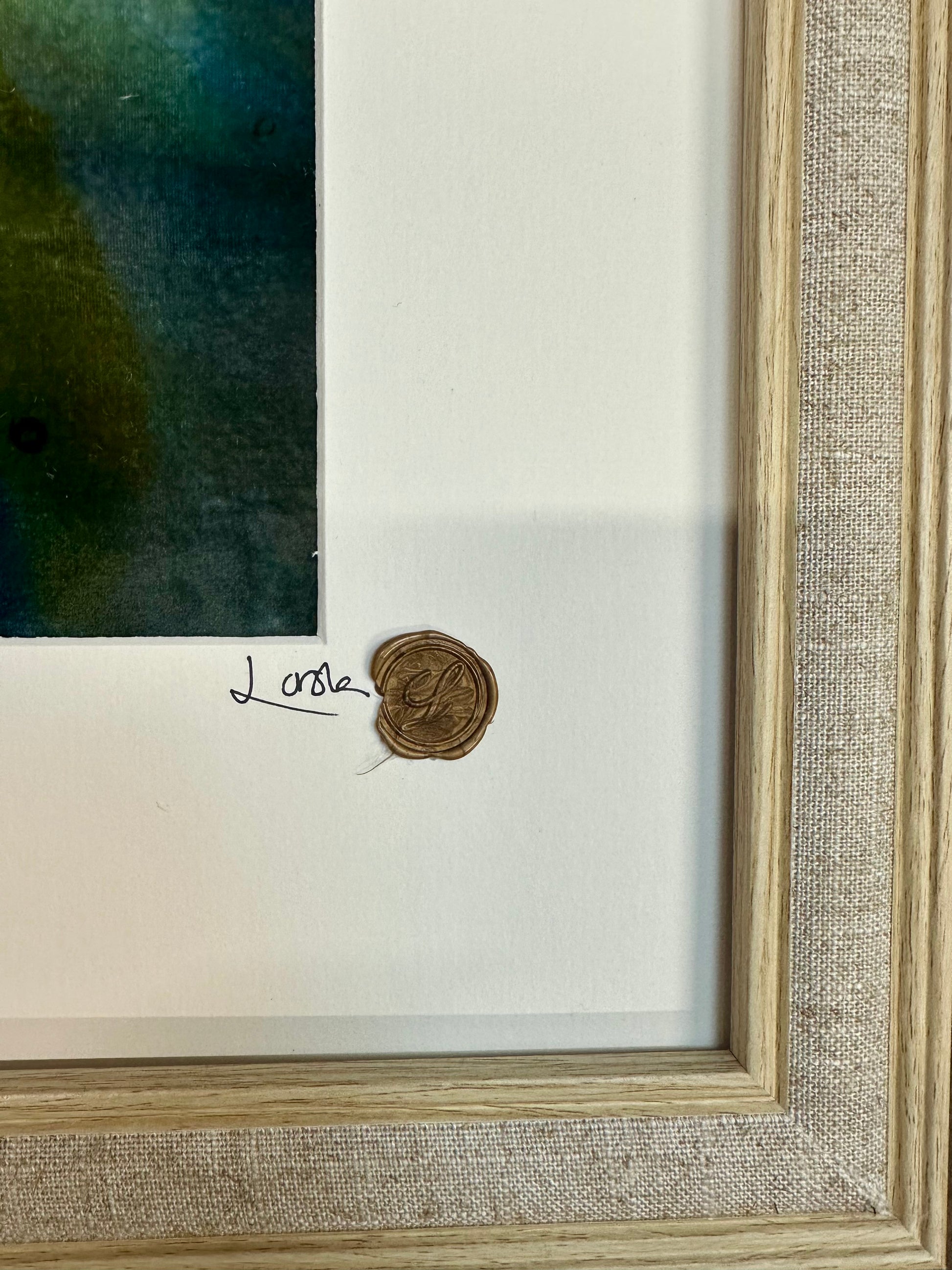 Lorsha original Handpainted Devore velvet with mixed leather and metals framed in a contemporary linen frame