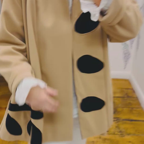 “Vivion “ camel and black pebble design italian swing wool mix coat